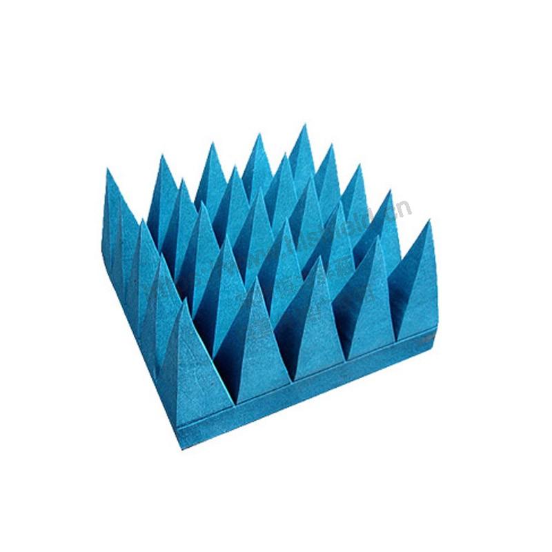 高性能寬帶角錐吸波材料是一種實心錐型含碳黑的泡沫吸收體,是各種微波暗室的主體材料。這種材料在垂直入射和斜入射條件下,具有極好的寬帶性能,良好的散射和透射衰減性能。